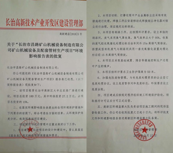 榮獲長治高新區(qū)環(huán)境影響報告表的批復(fù)